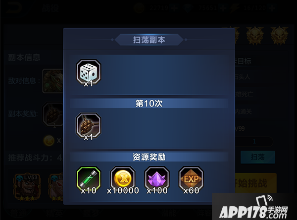 游戏前期,玩家主要通过副本升级,获得三颗恶魔印记的副本就可以开启扫荡功能,扫荡是获得经验的最快方式。游戏的体力上限是120,体力不满的时候每6分钟恢复1点。玩家每隔几个小时就可以扫荡一轮,这样就不会浪费体力了。