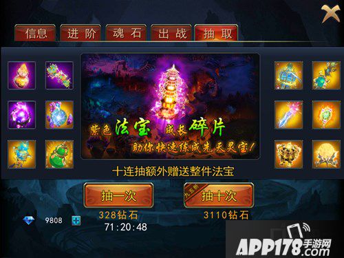 法宝哪里获得呢?虽然初期会有免费法宝,可是真的不强,后期法宝又去哪里获得?当然就是抽取了!这是最快来源!虽然有玩家会说,好浪费钻石!其实小编今天就是来告诉大家,十连抽只会赚不会亏!