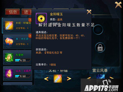 金阳暖玉!要获得这个道具,只有努力升级后系统发出的等级礼包哦!