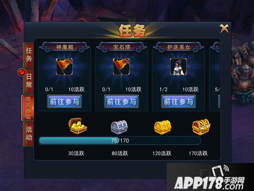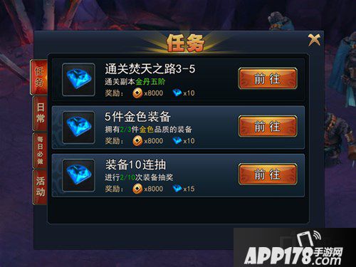 每日必做:显示游戏里所有副本任务完成情况,和未做任务。同时可以根据完成情况获取一定奖励。