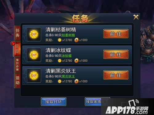 日常任务:显示你接取的日环任务和家族任务完成情况。