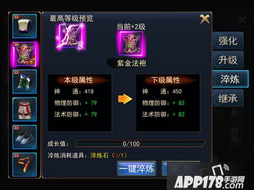 淬炼可以使装备的属性提高,神通也随之提高,是提升装备的必备利器!