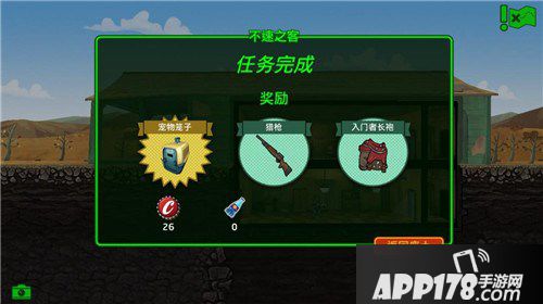 消灭两个匪徒后,匪徒首领会出现。难度较低,但首领会丢手雷,很可能将血量不足的小人秒杀掉。所以小人血量不足的时候,要及时补充治疗剂。奖励是杂物*2,武器*1,装备*1,治疗剂*4,核子可乐*2。