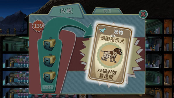 宠物一直都是《辐射》系列游戏的一大亮点,自一代起,宠物就深受玩家欢迎,尤其是Dogmeat,在玩家心中占据了较多分量。《辐射 避难所》沿袭了宠物的设定,将其与道具、装备、废弃物并列为四大收藏系统。