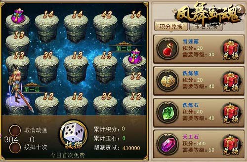 想想每天免费的积分,何不试试自己人品,争取好的道具呢爬的越高,奖励越好,积累积分,兑换坐骑装备与升阶材料,大大提高自己战斗力,快来一起爬塔吧!