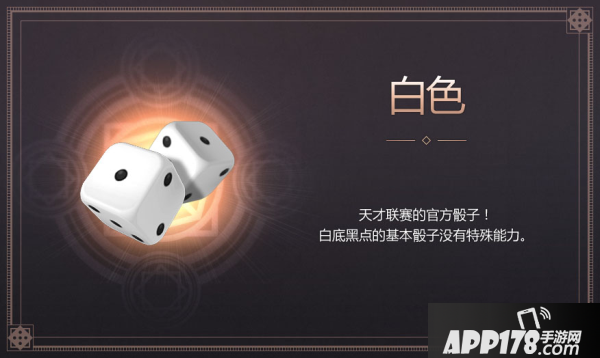 白色骰子:天才联赛的官方骰子,白底黑点的基本骰子没有特殊能力。