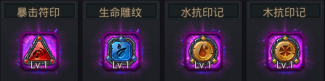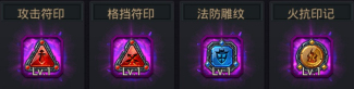 咱们通过炼金可获得各种符印、雕文、印记这些又有白色、绿色、蓝色、紫色、橙色。
