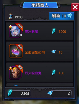 地精商店每1小时自动刷新,随机刷新商店里的道具,初始商店有4个空位,们也通过购买获得更多的商店空位,最多可增加至8个。有时候资源缺的比较急,小编就快速刷新了,消耗很少, 有时候却能起到奇效。