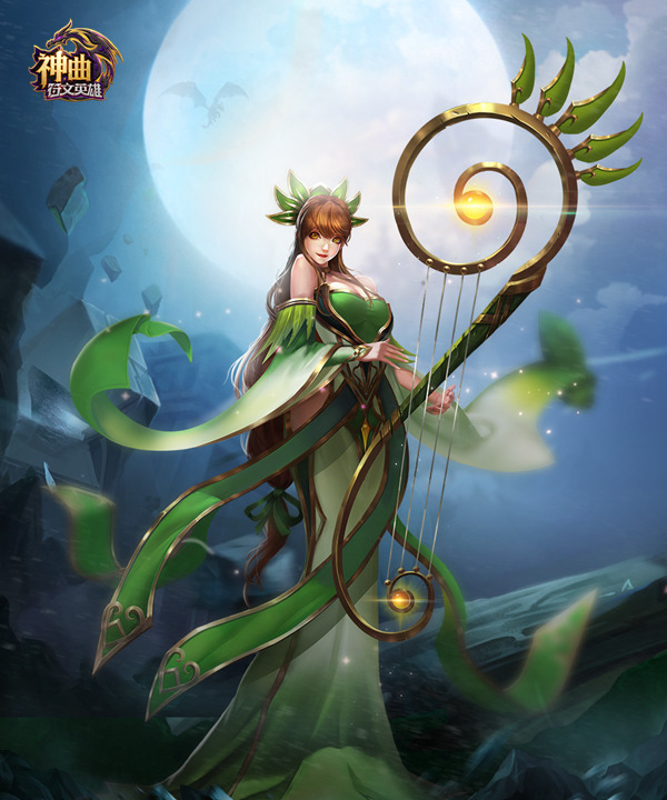 爱乐月神“美乐蒂”是一位喜好音乐,并且擅长辅助的女神。美乐蒂一袭绿衣,手持仙踪竖琴,曼妙的琴声奏响,万籁俱静,音律所影响的范围皆为女神所掌控。而“英雄赞美诗”更是美乐蒂的强大奥义之一,是将琴音、歌声、神力三种力量融为一体所创造出来的战场型辅助绝技。