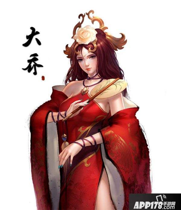 大乔是吴国专属武将,在军衔达到郡尉的时候可以招揽。大乔和蔡文姬的技能一样,但是两个武将的三围有很大区别。大乔的战法防御很高,可以针对对方阵容考虑将大乔作为前排。生产能力也是前期武将中的佼佼者,千万不要把她打入冷宫哦~