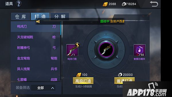 黄色品质以上的装备才可以打造。