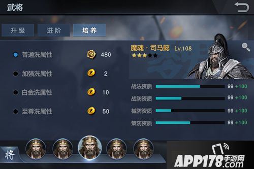 武将的培养系统可以大致分为升级、进阶、锤炼三种。升级即不用多说,与普通游戏套路基本相同,刷怪涨经验,升级提高属性,今天我主要是想浅谈一下第二个培养系统——进阶。
