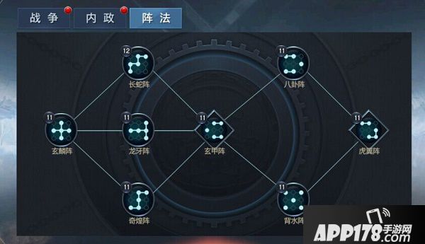 法阵的话适合初期的只有一两个阵,这时随便主点一个就行,主力推荐玄甲阵及战法阵这两个。由于游戏前期只会有战法将上阵,所以建议科技先点防御和兵力及战法伤害这三个。