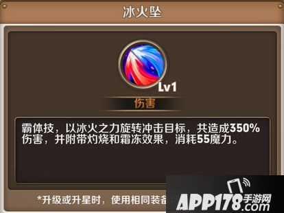 2、冰焰:此对剑分别用地核熔岩和极地冰晶铸成,其冰火之力虽强,但也绝非凡人可驾驭,绝世罕有。消耗同样品质的武器可提升技能等级。LV1:冰火坠,腾空并迅猛冲下攻击目标、LV2:技能伤害额外增加50%、LV3:对霜冻目标伤害提高20%、LV4:对灼烧目标伤害提高30%、LV5:冻结霜冻目标1.5秒。