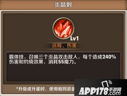 1、禁锢:魔龙血液在剑身中流淌,层层玄铁锁链才能将其压制,为人所用。消耗同样品质的武器可提升技能等级。LV1:炎晶刺,召唤火焰晶刺攻击前方、LV2:对灼烧目标伤害提高35%、LV3:魔力消耗减少10点、LV4:技能伤害额外增加50%、LV5:技能暴击率增加30%。