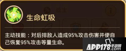 对后排敌人造成95%攻击伤害并使自己恢复95%攻击等量生命。