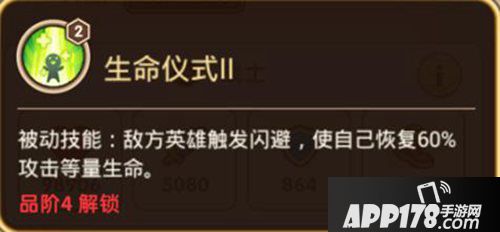 敌方英雄触发闪避,使自己恢复60%攻击等量生命。