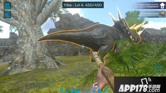 2、玩家需要先驯服一只淡水碳龟,让这只乌龟去吸引三角龙的火力,而玩家就可以用长矛在三角龙背后进行攻击。