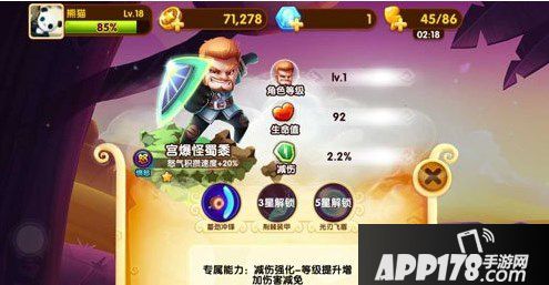 总体来说,怪蜀黍的定位是一个灵活的高防角色,在无尽模式最为体现,他可以依靠蓄劲冲锋和20%的怒气积攒时间减少来灵活走位!减伤属性让他推关卡也更加容易!