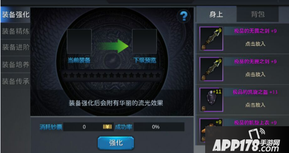 装备强化从+1到+6都只需要明镜石,从+7开始需要龙砂石,以及镇煞石(防止强化失败掉级)。同时,装备强化有可能失败的。