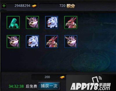 宠物的获得主要是靠捕捉,每36小时可以免费捕捉一次。其余的时间捕捉一次需要200金砖、捕捉10次需要1800金砖。用金砖捕捉宠物可以获得积分,免费捕捉是不能获得的。