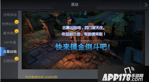 古墓凶地是《鬼吹灯 3D》中活动之一,主要产出经验。玩家进入活动后,只需要击杀场景内的古代干尸即可。活动时间30分钟,中途退出活动场景,可继续进入。