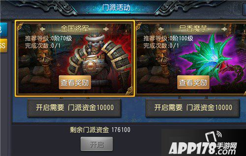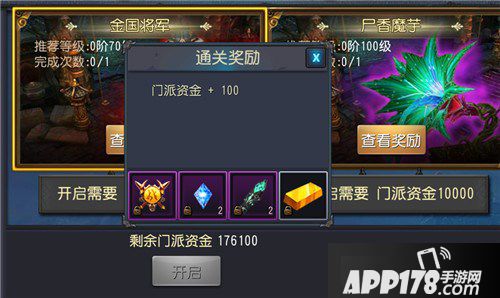 门派副本每个门派成员都可进入,不设置进入等级,但玩家们需要参考推荐等级,不然就会被虐得很惨当进入门派BOSS的副本后,将强制切换为友善模式,出去之后恢复成原本设置,击杀副本BOSS通关之后,门派中每个人都可以获得大量奖励,而且门派战功还会+10000、个人战功+100、门派资金+100000,而且战败的成员还可以获得战功、经验、造化点和玉璧。看着如此丰厚奖励,是否已经饥渴难耐?