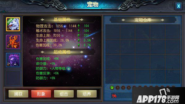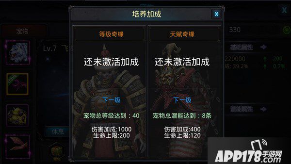 3、培养加成。宠物可以通过解锁培养加成来追加原有属性,每个宠物捕获后都会携带不同的属性,当你满足不了正常属性加成的宠物时,不妨将宠物进行培养加成,通过天赋奇缘及等级奇缘将宠物属性追加至较高阶级,以便获得更大的属性加成提升。