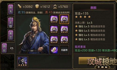 适配武将:任意武将国战下城可以用不适合过副本 特别是城镇加成的 魏延 吕蒙