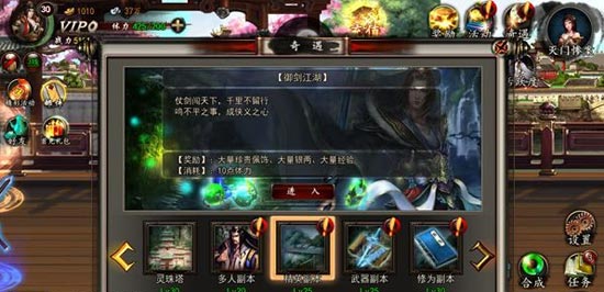 格斗江湖里面副本的种类很多,主要有普通副本、精英副本、多人副本、武器副本和修为副本等,另外就是特殊副本灵珠塔了。