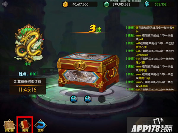 武道切磋,当然得遵守规则,你可以通过左下角“说明”按钮了解比武场的相关规则,积分以及荣誉称号等信息。