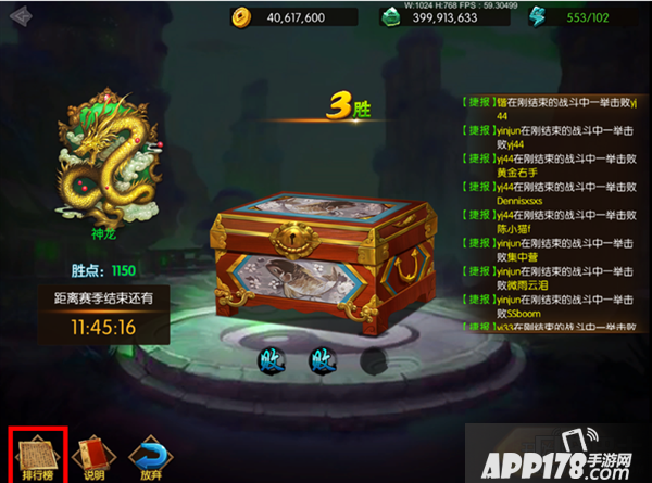 你可以点击中间的宝箱来了解比武场的所有奖励宝箱,右图的比武公告会告诉你当前比武场的战斗信息。