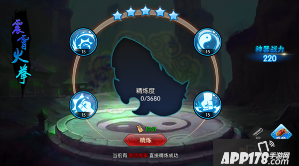 使用“精炼符”可提升神器精炼度,当精炼度达到一定程度,可直接提升神器品质1颗星。每个品质对应的精炼度越高,直接精炼成功的几率越高