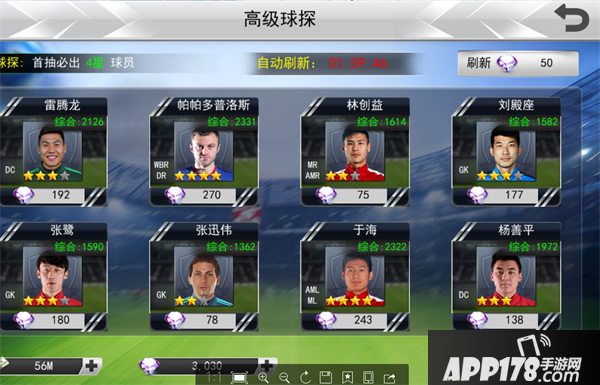 2.球探系统:这里我们要着重说一下球探系统,它的球探有三个,可供我们使用不同的资源,用不同的方式获取球员,如普通球探(用金钱直接签约想要的球员,签约后即获得);精英球探(用钻石直接签约想要获得的球员,签约后即获得)。上述的两个球探都相当于一个福利入口,我们直接可以用我们的资源换取球员,减少了我们的风险。还有的一个球探是神秘球探,(它类似与魂匣这个东西,是我们花费大价钱几率抽取当前版本最火的球员的形式,像本人这种小r玩家也只是图个新鲜而已,万一中了呢~)