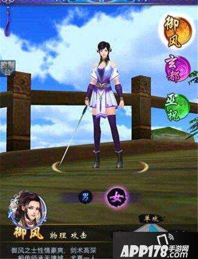 通过职业图我们可以看到,御风派的衣着,十分干练,是修仙一族的经典着装。且衣服以单机游戏中天墉城的着装为原型设计,一贯的白紫风格,使玩家在职业选择界面就有一种熟悉感和亲切感。