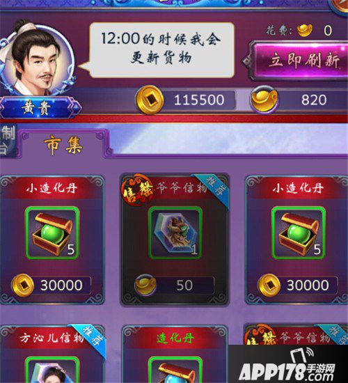 随着剧情的引导,会遇到商人NPC黄贵,你可以通过消耗钱币或元宝在他的店铺中买到你的所需。而且他还会定时更新物品哦。