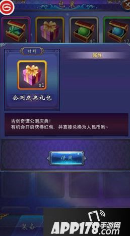 2、打开“包裹”可以看到获得的“公测庆典礼包”,开启“公测庆典礼包”有一定概率获得不同金额档位的红包,单个红包最高888元。