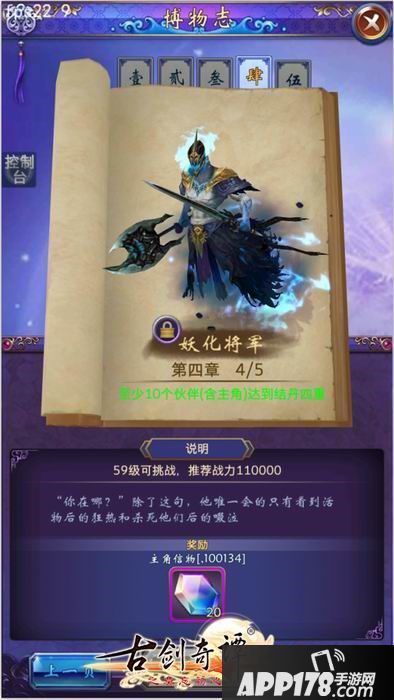 本关开启条件是玩家至少有10名伙伴达到结丹四重境界,且主角等级达到59级。妖化将军拥有强力的法术全体攻击,还可以召唤敌兵。胜利后可以获得20个主角信物。