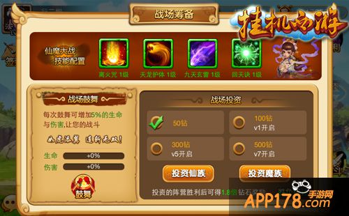 会抓住时机,才能成大事。不是高富帅、白富美,没有叼炸天的战力怎么办?莫慌,小透明也能抱大腿,《挂机西游》的仙魔大战为各位投机分子开放了投资玩法。在战场筹备期间,拿出一笔资金投资自己中意的阵营,该阵营一旦获胜,便能收取1.8倍钻石奖励的大回报哦。要是不放心自己的投资阵营,小编教您一个小秘密,打开右下角的胜负统计,各方战局形势一览无余,一般人我不告诉他。