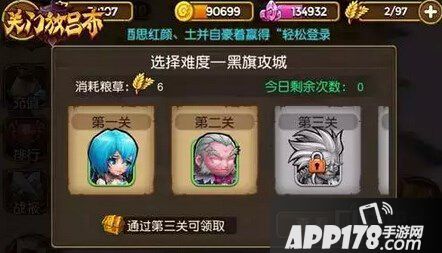 出了城外,获得金币就需要靠实力了,“敌寇攻城”便是一个获得金币的好去处,每日可打三次,但其巨额奖励需要在通过第三关后才能领取,不要浪费每天的三次机会。