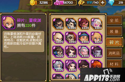 召唤夏侯惇和升星的必备材料。上场消耗300能量。