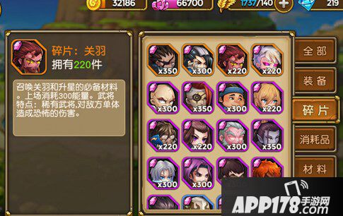 召唤关羽和升星的必备材料。上场消耗300能量。