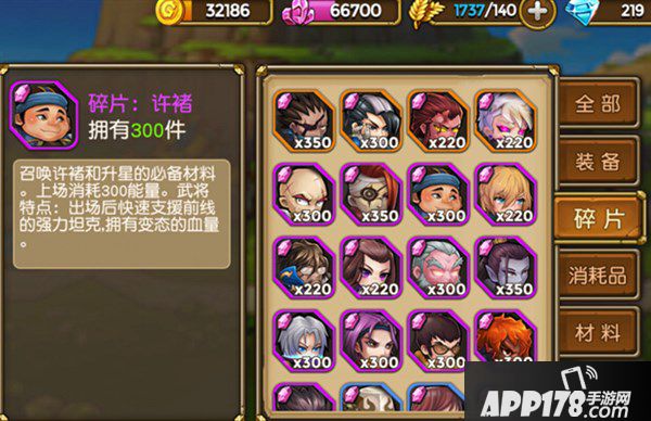 召唤许褚和升星的必备材料。上场消耗300能量。