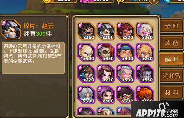 召唤赵云和升星的必备材料。上场消耗200能量。