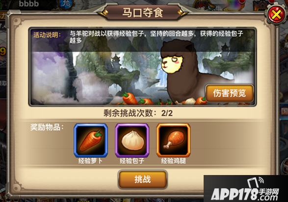 从哪里可获得这些武将升级所必须的食物呢?首先,马口夺食是主要的资源产出玩法,每天刷两刷,坚持的回合数越多,所获得的食物越多;其次是常规副本、等级奖励或是商店购买。