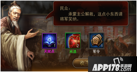 同时,杀尽奸佞,除暴安良夺取城池之后,热心的百姓也会献上不错的物品给予主公强大的后援支持。