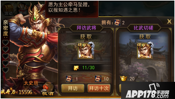 玩家Lv.24后开放【拜访】系统,【拜访】无需进行战斗,使用拜帖可进行拜访,拜访后可获得居城武将