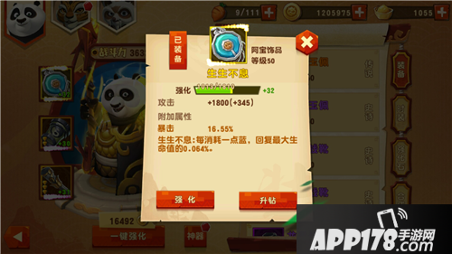 这个装备是在竞技场更换的,不说二话,这个金装对战斗力的加成是1000+。所以必须要还过来。看着属性:攻击1800、暴击16.55% 价值爆炸!