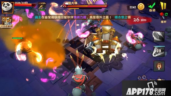 当然游戏的操作感不可避免有些削弱,但这不代表身为ARPG游戏它与玩家便失去了最直接的互动,三角色切换模式堪称本作最大亮点。阿宝、师傅、悍娇虎皆成为你的可控角色,三者在攻击上各有所长,依据敌人类型玩家可以随时切换战斗角色。同时每一名角色皆可携带一名助战伙伴,组成一支变化多端的冒险小分队,群殴BOSS才是王道。毫无疑问,本作的敌人强度也会大大增强,大家也要做好心理准备哦。