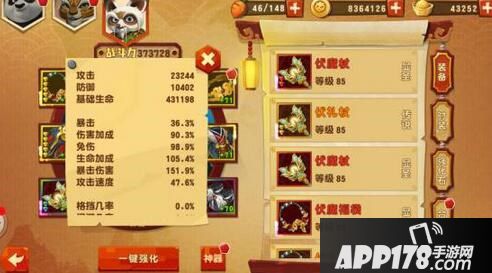 我主要提高的是老虎的八字爪和链爪,八字爪的2个秘籍都5星,链爪坚毅4星,狂怒3星。刷天机阁我用的熊猫的无影腿、泰山压顶、太极拳,老虎的八字爪、链爪、虎爪连踢,师傅的雷、火、水。